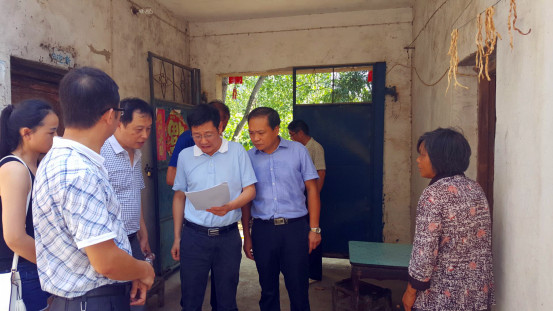 图为7月23日下午,市委副书记、市长何飞同志(左四)带队在南城史岗社区一组低保户赫业才家中督办检查大数据工作落实情况.