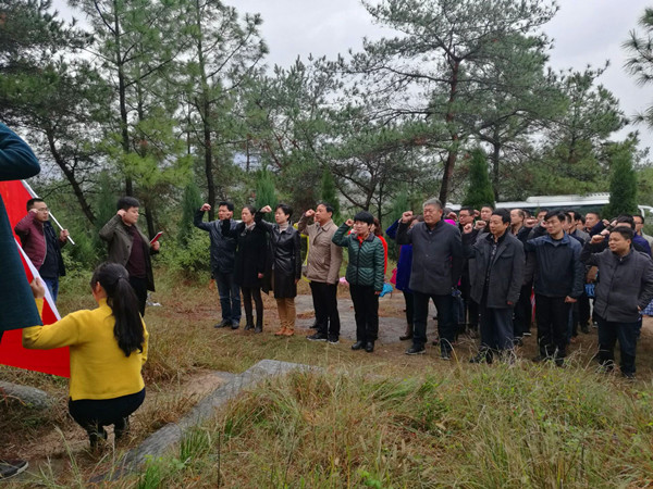 图为市纪委全体纪检干部在老一辈无产阶级革命家黄火青墓前重温入党誓词