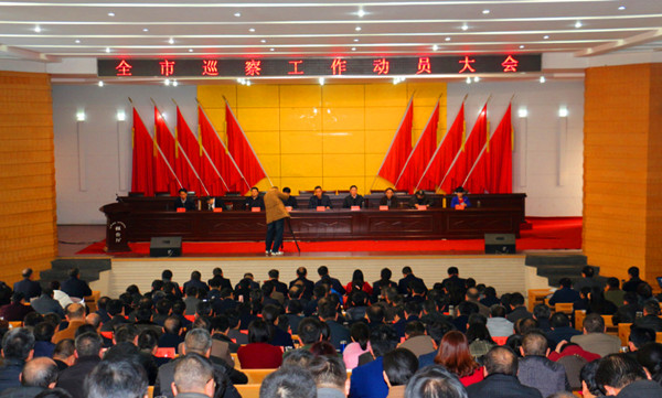 12月9日,我市组织召开全市巡察工作动员大会,对首轮巡察工作进行安排部署。全市各镇(办、区)党政主要负责同志,党组织关系在枣阳的市直单位及其副科级以上二级单位主要负责同志,市纪委、市委组织部班子成员,市纪委派出纪工委书记、派驻纪检组组长及市委巡察机构全体人员等380余人参加会议。