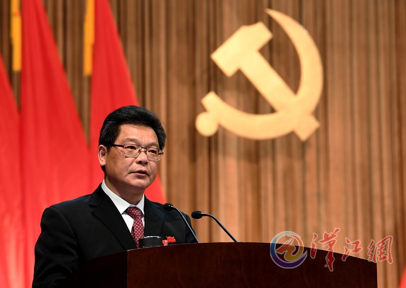 任振鹤同志代表中共襄阳市第十二届委员会作报告。 全媒体记者赵兴沛摄