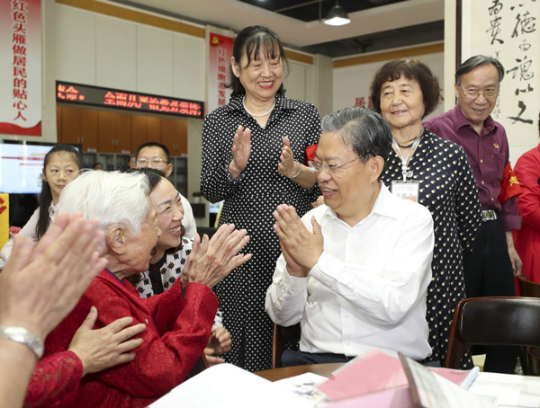 5月20日至22日,中共中央政治局常委、中央纪委书记赵乐际到湖北省调研。这是5月22日,赵乐际在武汉市百步亭社区调研了解基层党风廉政建设情况,与基层干部群众面对面交流。 新华社记者 丁海涛 摄