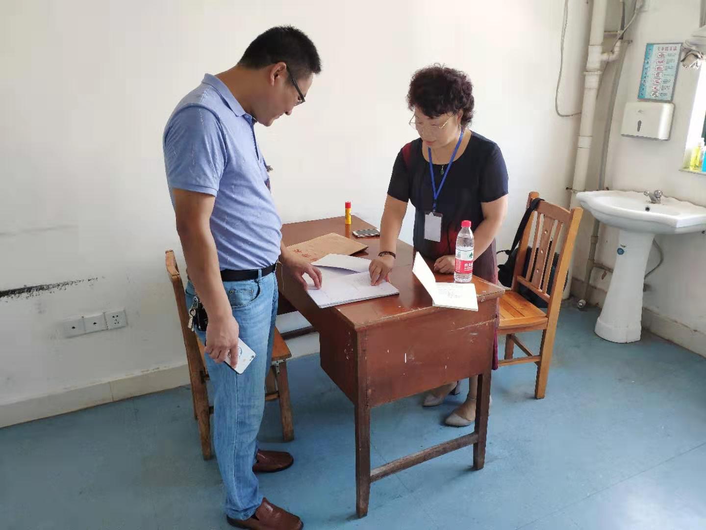 图为监督员查看测试通过人员的资料