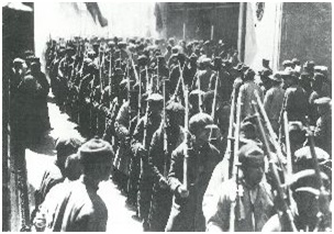 1927年3月,杨培森任上海总工会副委员长,参与领导上海工人第三次武装南市区起义。图为参加上海工人第三次武装起义的工人武装