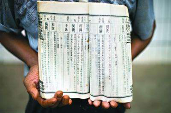 萧氏的后人展示萧家家谱,“连祜”即为萧石月(任勇 摄)