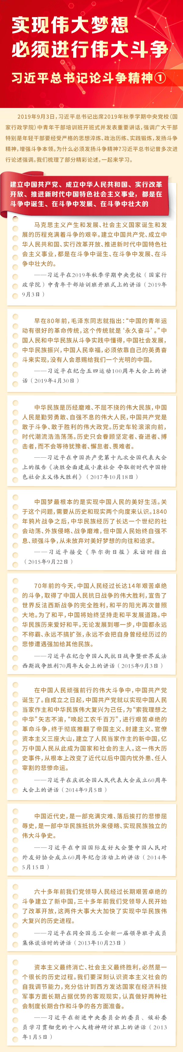 实现伟大梦想必须进行伟大斗争, 习近平总书记论斗争精神①
