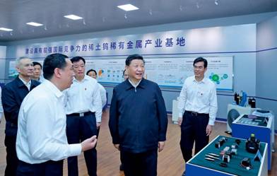 2019年5月20日至22日,习近平总书记到江西进行考察调研,对加快革命老区高质量发展做出重要部署。图为习近平总书记在江西金力永磁科技股份有限公司考察,详细了解企业加大科研投入、致力科技创新、注重生态修复的情况。