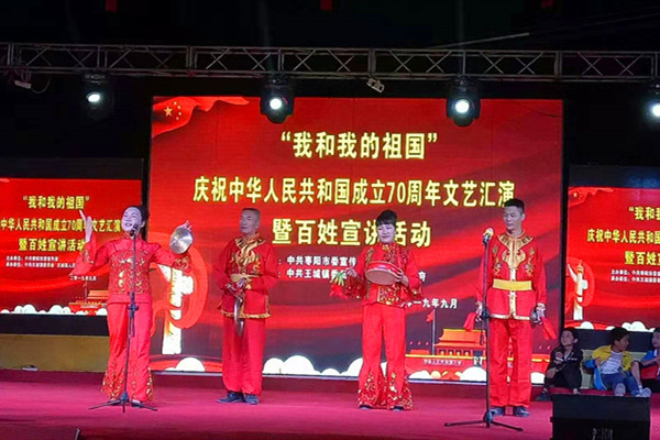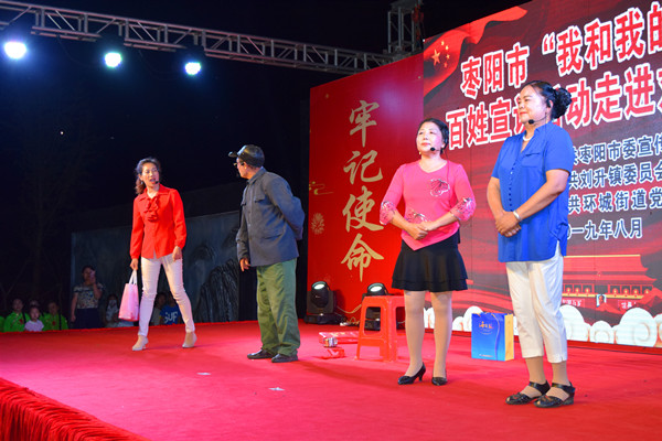 自今年7月开始,枣阳市将推进党规党纪和监察法宣传教育“十进十建”活动与隆重庆祝中华人民共和国成立70周年“百姓宣讲”活动有机结合,充分发挥红色文艺轻骑兵和百姓宣讲员的作用,宣传党的方针政策、党纪法规、宣传从严治党变化、宣传党风廉政建设、宣传勤廉人物先进事迹,该市18个镇(办、区)相继开展了 “我和我的祖国”百姓宣讲活动,并进行现场网络直播,截止目前已演出10余场,受众党员干部达10万余人次。