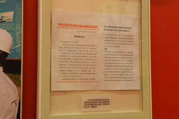 作为“伟大历程 辉煌成就——庆祝中华人民共和国成立70周年大型成就展”上为数不多的红头文件,中央纪委国家监委驻交通运输部纪检监察组的《监察建议书》受到不少观众的关注。