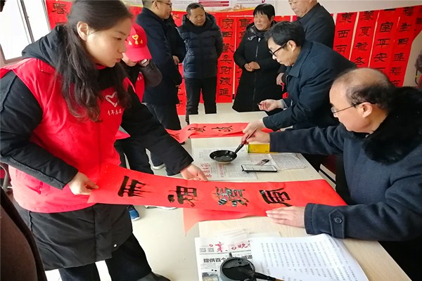 据悉,此次活动共送出春联120余副,书法作品10余幅,送出图书80余本。