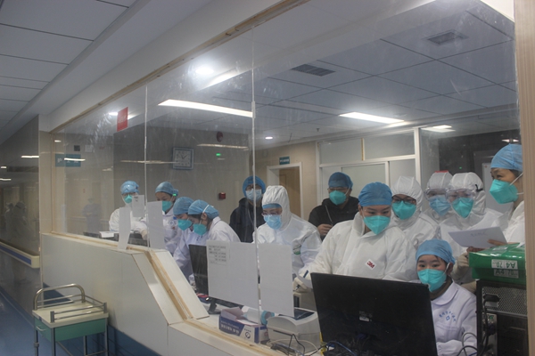 山东医疗队、湖南医疗队驰援黄冈。540名医护人员迅速集结,分批进入医疗点,帮助研究救治方案,积极救治感染患者。(湖北省黄冈市纪委监委供 何幸运 摄)