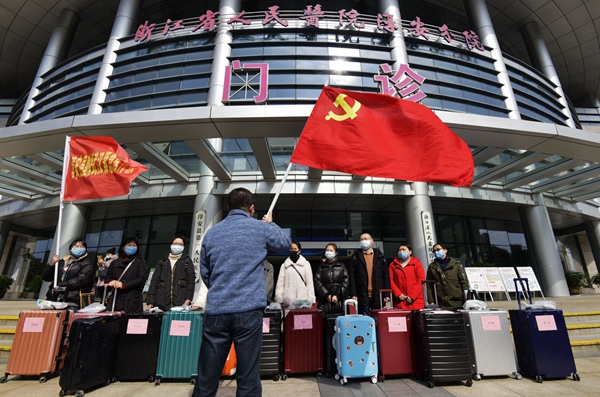 深夜11点召集,12点成队,一小时集合完毕。2月9日上午,经过培训,由杭州市淳安县第一医院、中医院、第二医院和妇保院医生、护士组成的淳安驰援武汉紧急医疗队踏上征途。(杭州市淳安县纪委监委供 汪建林 摄)
