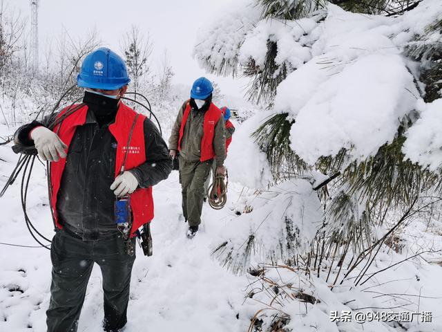 2月15日凌晨6点,受寒潮天气影响,湖北枣阳市普降大雪。持续降雪造成的覆雪、覆冰引起10千伏丁王联一线供电中断。故障发生后,国网枣阳市供电公司立即组织共产党员服务队队员赶赴现场冒雪进行抢修。