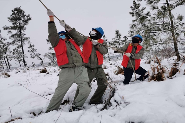 “现在气温太低了,又是风又是雪,登杆的时候一定要注意安全,戴好防护口罩……”2月15日凌晨6点,持续降雪造成的覆雪、覆冰引起供电中断,造成1000多户居民无法用电,枣阳市供电公司立即组织共产党员服务队赶赴现场进行抢修。因抢修线路在山区,加上厚厚的积雪,导致车辆无法通行,抢修队长田明德及4名抢修队员就徒步前行,经过8个多小时的仔细排查和抢修,线路顺利恢复供电。