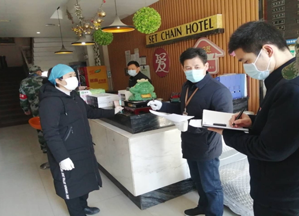 “守护好枣阳的南大门,就是守住枣阳人民生命安全的第一道安全关口,我们丝毫不能放松。”枣阳籍老兵、北京市顺义区政法委扫黑除恶专项斗争办公室、禁毒办公室主任张兴国(左一)过年从北京回枣阳探亲,当了解到家乡防控力量紧张,他毅然决定暂缓回京行程,留在枣阳参与疫情防控。他还积极协调医疗物资,向吴店镇中心卫生院捐赠了1万双医用手套,个人向吴店镇民政办捐款1000元现金抗击疫情。