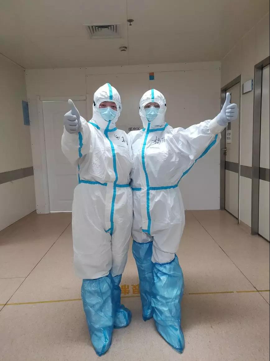 归队的心情跟之前不太一样。进隔离病区之前反复手消毒,戴头套、N95口罩,穿隔离衣、绑鞋套,戴第二层帽子和外科口罩、绑紧第二层鞋套,压紧护目镜、调整面屏、戴厚实的双层手套。同进病区的曾为红老师再三检查我的防护服有没有破,护目镜是否起雾,嘱咐我一定要保护好自己,才能更好地救助他人。