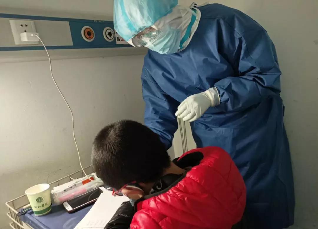 这位战友和我们一般大,都是80后,原先是一名儿科护士。她说之前一直没提自己的职业,是因为觉得很惭愧,本应该和大家一样,在这样的关键时刻奔赴一线战场,但是自己却因为感染不得不在这里接受来自遥远天津的援助,所以只能在病房里力所能及地用自己的专业帮助一些患者。