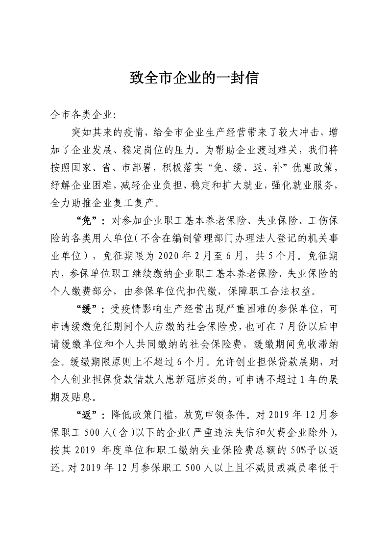 致全市企业的一封信