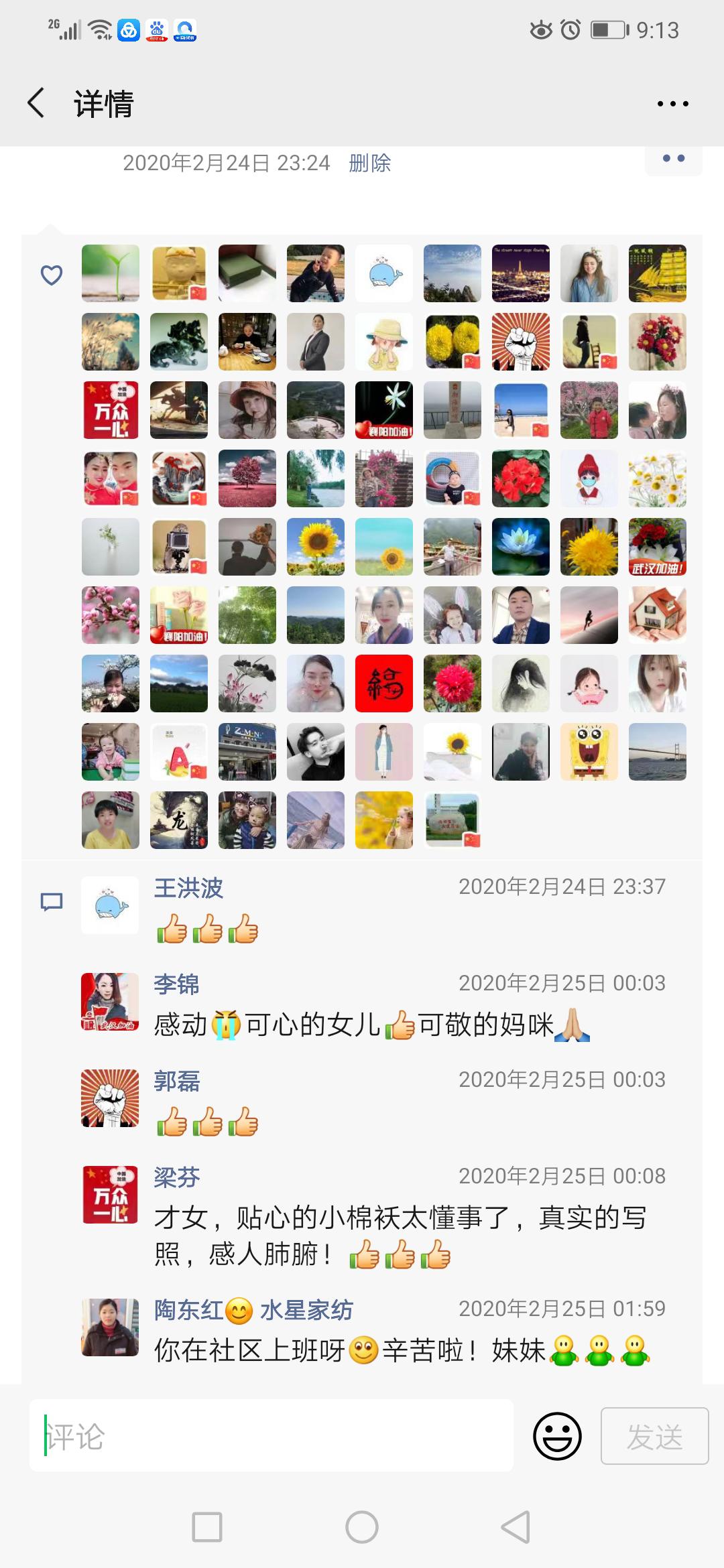 从除夕夜开始,她和同事们每天早出晚归,奔波在社区抗疫一线。入户宣传、体温排查登记、物资配送、上报各类报表、发放防疫物资、走访特殊群体是她每日必做的工作,从早上八点到晚上九点,从一楼爬到八楼,从巷东到巷西,无论是刮风还是下雨、下雪,辖区内总会有她的身影。用她的话说,“只有我们社区干部工作做得细致再细致一些,才能让居民更有安全感,这场战争才会更快结束。”
