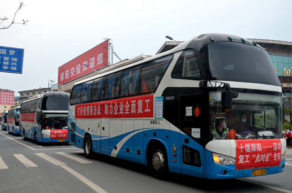十堰市郧阳区组建劳务输送服务工作专班。截至目前,重点摸排前往上海、杭州、深圳、东莞等地返岗复工人员1719人,已组织“点对点、一站式”集中精准输送、安全返岗复工4批次。(湖北省十堰市郧阳区纪委监委供 曹克生 摄)