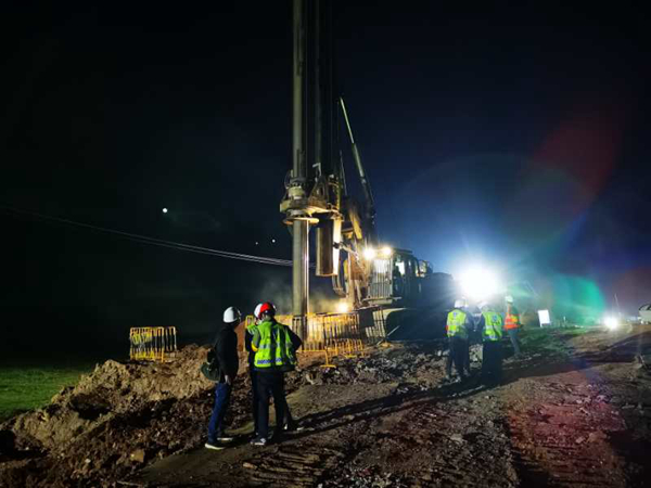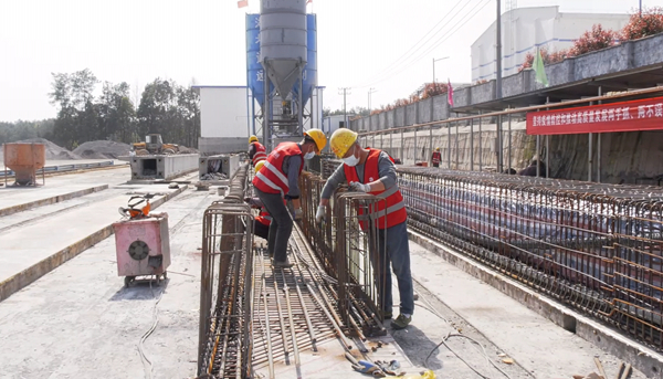 鄂州机场及配套工程项目1642名复工人员已分批顺利返岗,并建立健康档案,实行集中居住跟踪监测,工程项目复工复产率达100%。图为机场快速通道S203项目施工现场。(湖北省鄂州市临空经济区纪工委供 李停停 摄)