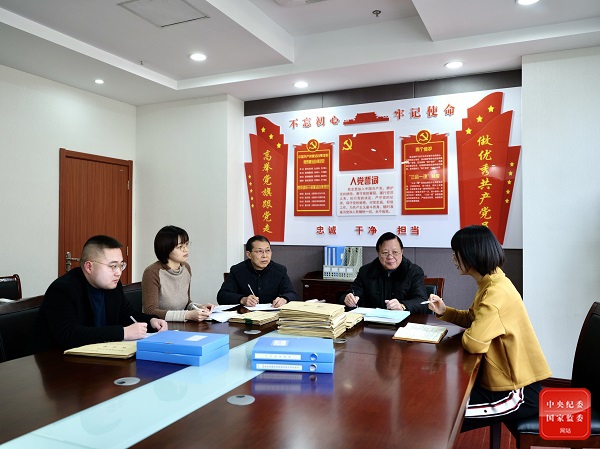 淮安市淮安区纪委监委工作人员讨论医保基金领域重点问题线索。张运 摄