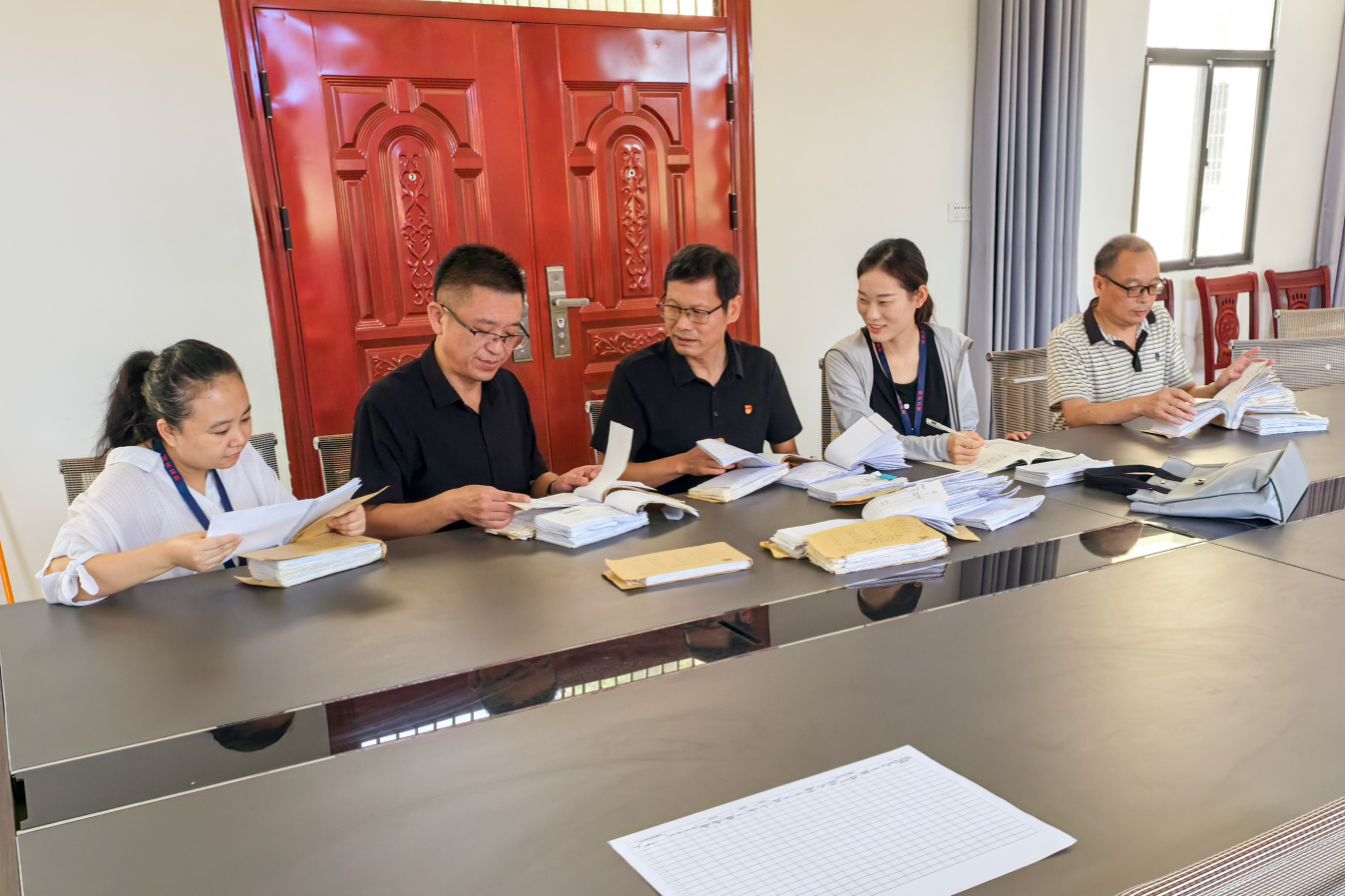 该市纪委监委充分发挥“室组地+职能部门”联动监督作用,与财政、审计、税务等部门组建检查专班,采取查阅账目、随机抽查等方式,对全市各级党政机关“三公”经费使用、津补贴和福利发放等情况开展监督检查,时刻绷紧节日“纪律弦”。图为检查专班在鹿头镇农业农村服务中心检查财务报销凭证。
