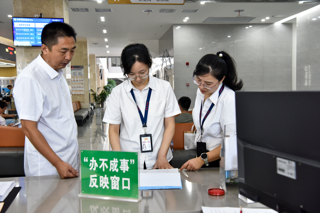 该市纪委监委发挥派出机构监督“探头”作用,深入办事大厅开展明察暗访,重点检查工作人员在岗状态、服务态度、办事效率以及“一次性告知”“限时办结”等制度落实情况,严查推诿扯皮、敷衍塞责等行为,推动政务服务持续提升、干部作风向善向好。图为该市纪委监委派出第四纪检监察组在市行政服务大厅“办不成事”窗口查阅台账。