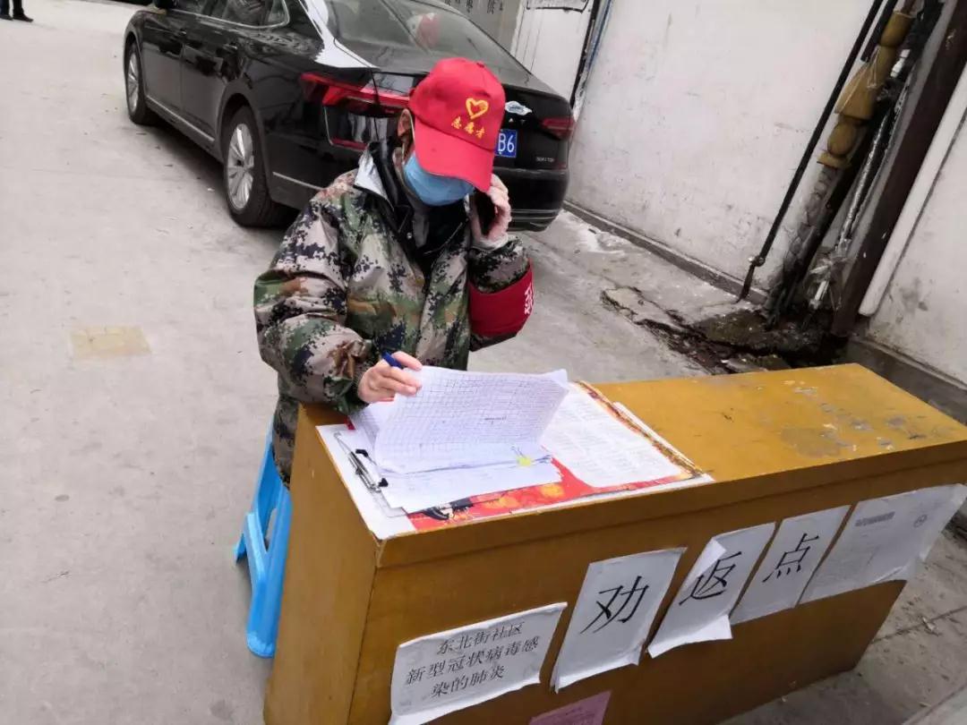 “您好,我是东北街社区居委会的工作人员,请问最近有没有从武汉返(来)回的人?”“请问您全家今天体温测了没有?多少度?有没有咳嗽、咽痛的?”……这是东北街社区每位工作人员入户的开场白。自1月23日下午起,社区党支部书记李刚亲自带领工作专班,分网格分片区一起投入到疫情大排查工作中。通过网格化管理、地毯式排查,东北街社区牢牢筑起疫情防控的第一道防线。通过逐户摸排,统计有150名武汉返枣人员,每天电话联系这些人员的身体状况;启动全民居家体温排查后,再次上门宣传并登记,累计排查目前在家居民有1200多户,3400多人。掌握第一手资料后,安排专人每天进行电话联系,逐户登记体温,建立台账。若有当时没有联系上的,再次入户上门排查,做到不漏一户、不漏一人。