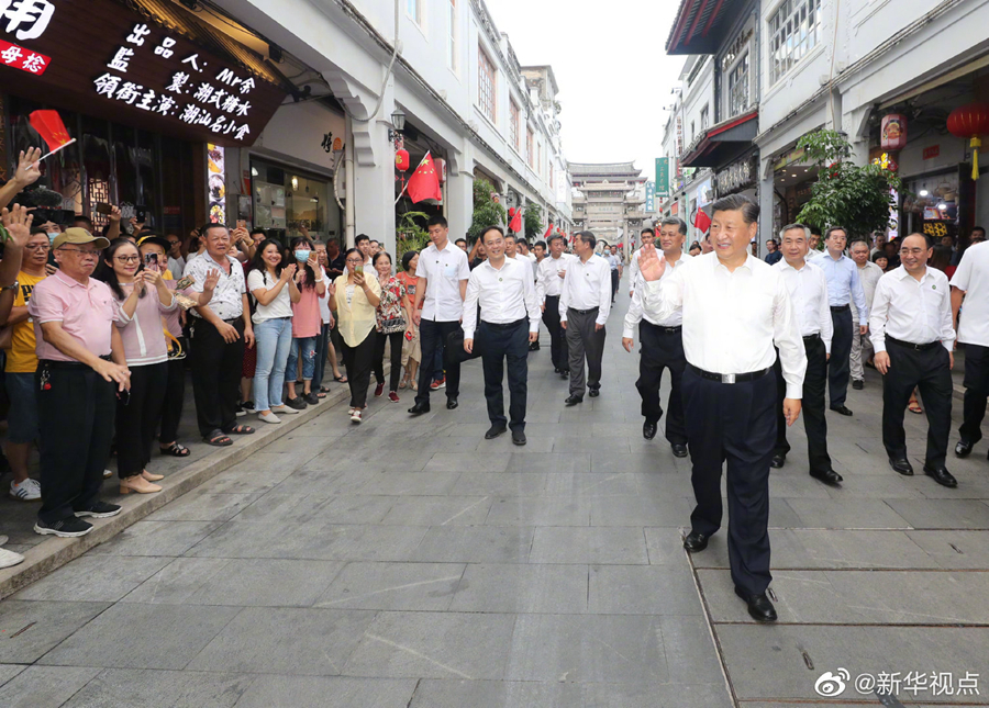 习近平总书记12日赴广东考察调研。当天下午,他首先考察了潮州市广济桥、广济楼、牌坊街,察看文物修复保护、非遗文化传承、文旅资源开发等情况。随后,习近平前往潮州三环(集团)股份有限公司,了解企业自主创新和生产经营情况。(文字记者:张晓松、朱基钗 摄影记者:鞠鹏、王晔、李响)