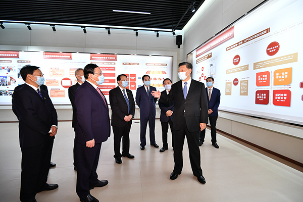 习近平强调,从现在起到本世纪中叶,是我国全面建成社会主义现代化强国的30年。新征程上,我们要把浦东新的历史方位和使命,放在中华民族伟大复兴战略全局、世界百年未有之大变局这两个大局中加以谋划,放在构建以国内大循环为主体、国内国际双循环相互促进的新发展格局中予以考量和谋划,准确识变、科学应变、主动求变,在危机中育先机、于变局中开新局。